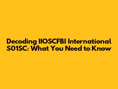 Decoding IIOSCFBI International S01SC: What You Need To Know