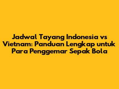 Guys, kalau kalian fans berat sepak bola, pasti sudah gak sabar kan menantikan duel seru antara Indonesia vs Vietnam? Pertandingan ini selalu menyajikan laga yang panas dan penuh gengsi. Nah, buat kalian yang pengen nonton langsung atau sekadar update jadwalnya, artikel ini adalah tempat yang tepat. Kami akan memberikan informasi lengkap mengenai jadwal tayang, termasuk jam berapa, di mana, dan tips agar kalian tidak ketinggalan momen penting.