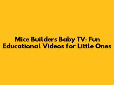 Hey guys! Today, we're diving into the super fun world of Mice Builders Baby TV videos. If you've got little ones, you know how important it is to find content that's not only entertaining but also educational. Well, these videos are a fantastic option, and I'm here to tell you all about why your tiny tots will love them, and why you'll appreciate the thought put into them. We're talking about a vibrant, engaging series designed specifically for babies and toddlers. It focuses on simple concepts, bright colors, and catchy tunes that are perfect for developing minds. The characters are adorable, the stories are easy to follow, and the overall production quality is top-notch. It’s the kind of show that keeps the little ones captivated while subtly introducing them to new words, shapes, and ideas. We'll explore the key features that make these videos stand out, the benefits they offer for early childhood development, and how you can easily find and enjoy them. So, grab a comfy seat, maybe a snack for yourself (and the little one!), and let's get into it!