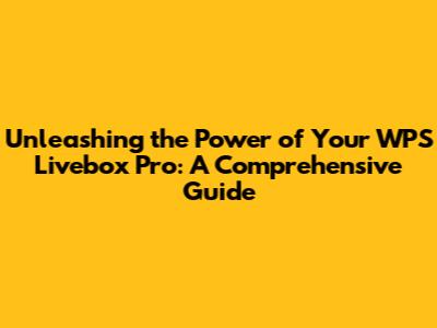 Unlocking The Power Of Your WPS Livebox Pro